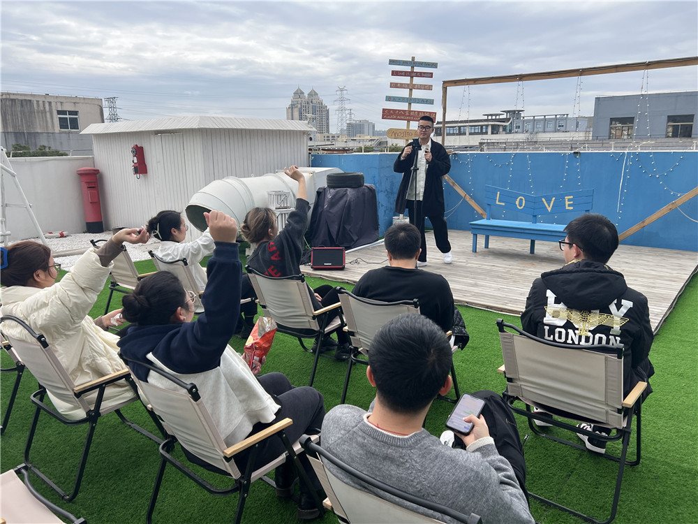 會議結束后便開啟了優資年夜飯。下午3點,大家陸陸續續到達轟趴館,映入眼簾的是早已準備好的紅包墻及伴手禮。露天新年演唱會與新年游園會同時進行,K歌、桌游、電子競技、臺球、年貨品嘗,好不熱鬧。