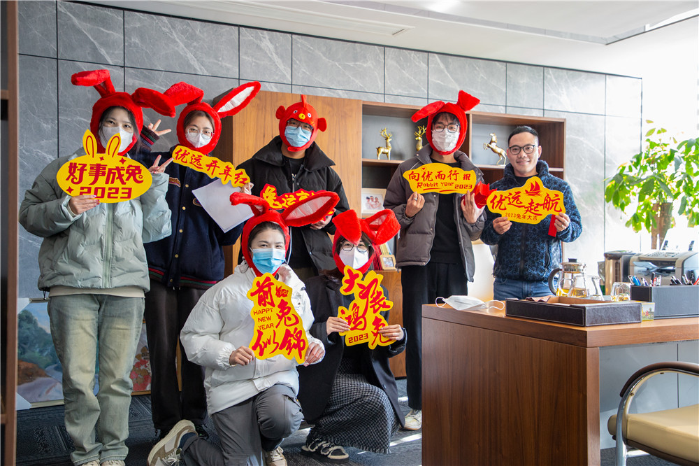 兔,是機(jī)敏和幸運(yùn)的象征;兔年,將是非同一般的繁忙同時又是祥和平靜的一年。百舸爭流,奮楫者先;千帆競發(fā),勇進(jìn)者勝!新的一年,相信每一位優(yōu)遠(yuǎn)人將以嶄新的面貌、飽滿的熱情,書寫全新的故事。讓假期里長的肉,用工作瘦回去!