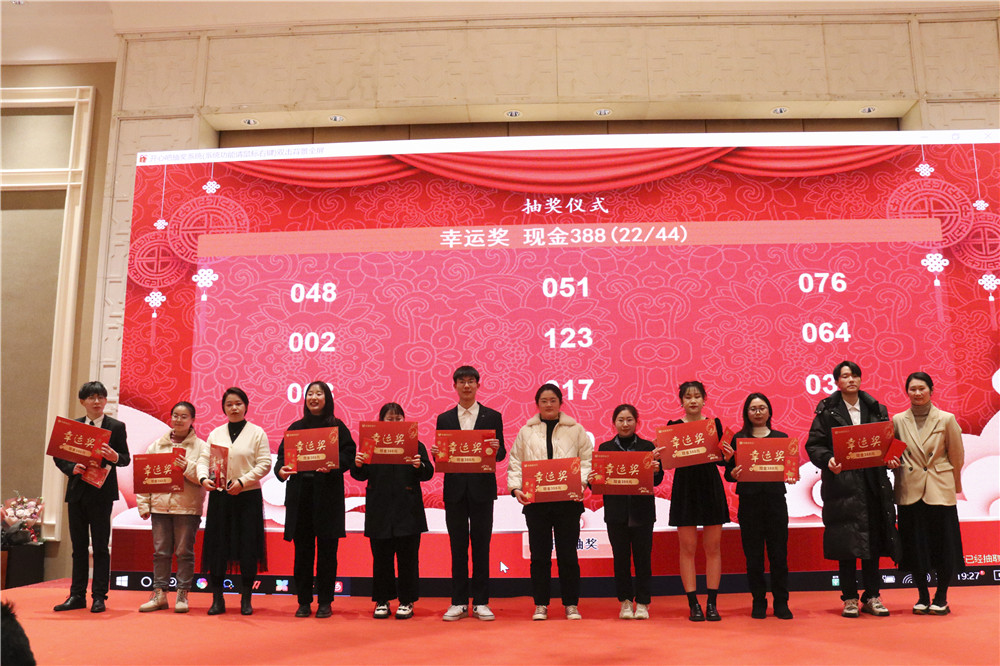 晚宴進行時,新人紛紛閃亮登場進行自我介紹,2022年第四季度各獎項得主也逐一揭曉,公司還為本命年同事送上了精心準備的禮品。晚宴的氣氛被一輪接一輪的抽獎和搶凳子、踩氣球等小游戲推至頂峰,臺上的同事一展歌喉,大秀舞姿,臺下的同事觥籌交錯,言笑晏晏,整個會場洋溢著歡愉喜慶的氣氛。