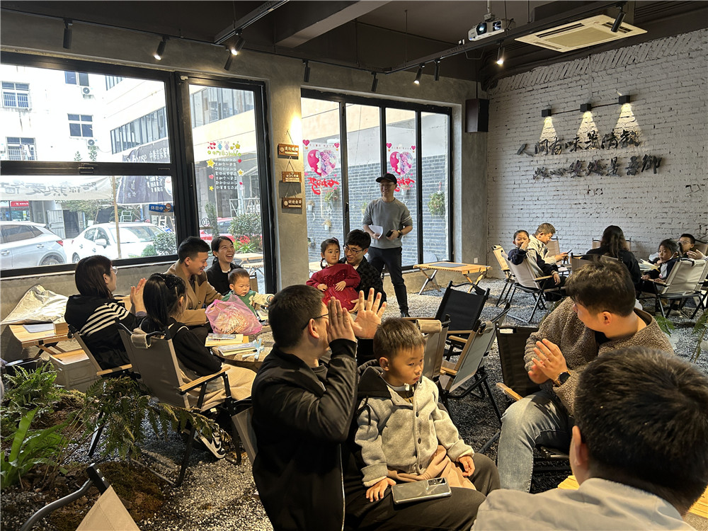 簽到環(huán)節(jié),悅讀社為每個(gè)到來(lái)的小朋友精選準(zhǔn)備了一份伴手禮,一盆多肉綠植和一本記事本。先來(lái)的小伙伴已經(jīng)拿起了他們帶來(lái)的書(shū)籍,開(kāi)啟了閱讀模式,耐心等待著未到的家庭。隨著最后一戶與會(huì)家庭的到來(lái),本次活動(dòng)正式拉開(kāi)帷幕。第一環(huán)節(jié),義烏悅讀社社長(zhǎng)李明陽(yáng)向大家介紹了悅讀社今年的活動(dòng)計(jì)劃,以及剛剛上線的“馬拉松”計(jì)劃。第二環(huán)節(jié),小朋友代表所在家庭做了自我介紹,這些小朋友自我介紹時(shí)像極了一個(gè)個(gè)播音小主持。第三環(huán)節(jié)由參會(huì)家庭對(duì)親子閱讀進(jìn)行系統(tǒng)性的經(jīng)驗(yàn)分享,包括什么時(shí)候讀、讀什么、與誰(shuí)一起讀等。最后,便是今天活動(dòng)的正式環(huán)節(jié)——圍爐煮茶,悅品書(shū)香。與會(huì)家庭以小圓桌為單位,一邊品著茶、吃著茶點(diǎn),一邊圍繞親子閱讀議題開(kāi)始分享交流。