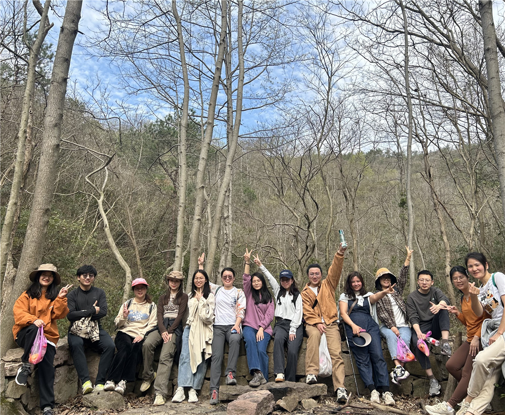大家在簡單的拉伸后,正式向大山出發(fā)。遠(yuǎn)看是連綿起伏、郁郁蔥蔥的高山,近看是狹窄陡峭的石階,花香漸漸漫上梢頭,鳥鳴輕和微風(fēng)愫語,撥云見古道,倚樹聽流泉,身邊不時(shí)有裝備專業(yè)的驢友結(jié)伴徒步。前半場小伙伴一路歡聲笑語,唱著山歌,猜著路邊盛開的花名。后半場大家集體在大陡坡“滑滑梯”:由于山路陡峭濕滑,很多小伙伴連續(xù)摔了好幾跤,不斷有人“嚎叫”,相互打趣對方出洋相后,還是會(huì)拍一拍衣服上的泥土,相互攙扶著、小心翼翼地摸索前進(jìn)。提前通過的小伙伴前來接應(yīng),分享爬山技巧,最終大家憑著不服輸?shù)木駪?zhàn)勝了困難,全體通過古道。到達(dá)山頂平地后,大家坐在水庫大壩上,看著粼粼水面,享受微風(fēng)拂面,呼吸天然氧氣,欣賞古韻遺風(fēng),感嘆不虛此行。