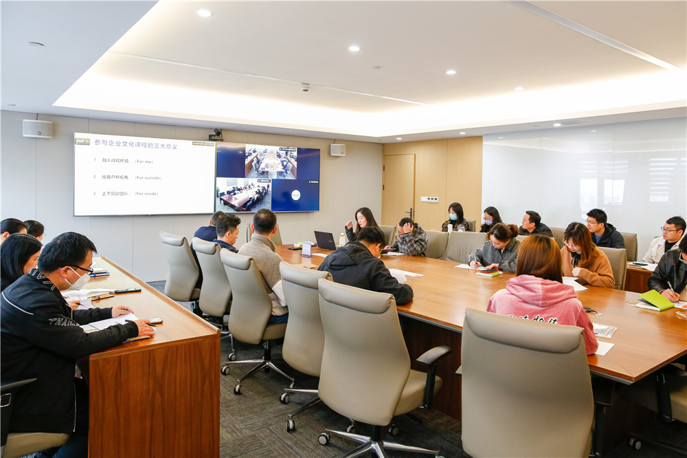 會上,方芳總首先從融入微觀環境(For me)、給客戶新視角(For outside)、上下同欲團隊(For inside)等三大角度詳細闡述了參與企業文化課程的意義。隨后,方芳總分別就發展歷程、合伙人機制、企業文化、生態圈布局等展廳內容模塊進行了詳細全面的講解,并適時引入相關案例,加深了參課人員對講解內容的理解和記憶。徐總對部分企業文化內容進行補充,并首次對集團經營之道和企業精神內各詞組的含義進行了深刻詳細的解讀。