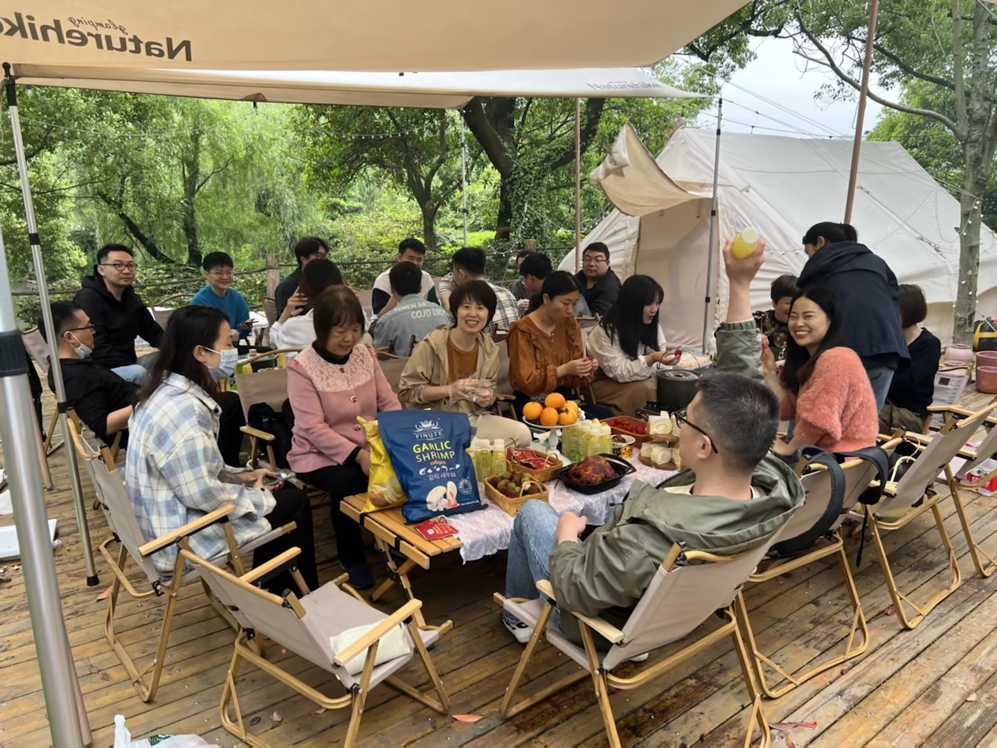 5月7日,寧波信息技術部、供應鏈管理部和綠時財務在九里灣莊園共度了一個輕松愉悅的周末。雖然天空飄著輕雨,但并沒有影響到大家積極參與團建活動的熱情。每個人都盡情地享受著田野風景、呼吸著清新空氣。隨著成員們陸陸續續到達,燒烤師傅也開始了“熱火朝天”的工作,鮮嫩的肉串在專業技術下被烤得外酥里嫩,飄來的陣陣香味讓人垂涎欲滴。“可以吃了!”在師傅的一聲吆喝下,大家迫不及待地品嘗著烤串、瓜分著烤全羊,時不時聊一聊生活和工作中遇到的趣事,歡聲笑語隨著縷縷炊煙縈繞在空中。