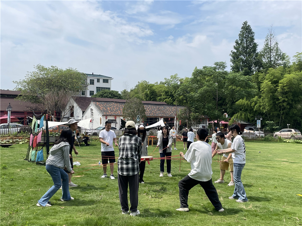 一大早,人員到齊,教練就帶著大家一起做熱身運(yùn)動。隨后,“勇武隊”和“一飛沖天隊”組隊完畢。兩隊分別展示了自己的口號、隊歌和pose,氣氛達(dá)到頂峰。Battle必不可少。兩隊就“高山流水”(傳送乒乓球)、“打鼓”(拉鼓打球)以及“大力士”(背人)活動展開了激烈的比拼。通過游戲,大家意識到我們是一個團(tuán)體,每個人都有不同的思考方式,結(jié)合集體智慧才能把事情做到更好。緊張的比拼結(jié)束后,大家各自落座,開始自助烤肉,不會烤的同事四處“蹭吃蹭喝”,吃得不亦樂乎。酒足飯飽之后稍作休息,大家開始了游園活動,有玩全地形車的,有玩叢林穿越的,有玩拉胚燒制的,也有圍爐煮茶做永生花團(tuán)扇的,大家歡聲笑語,不亦樂乎。