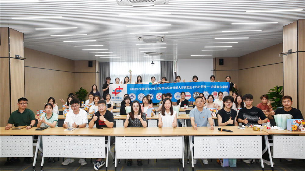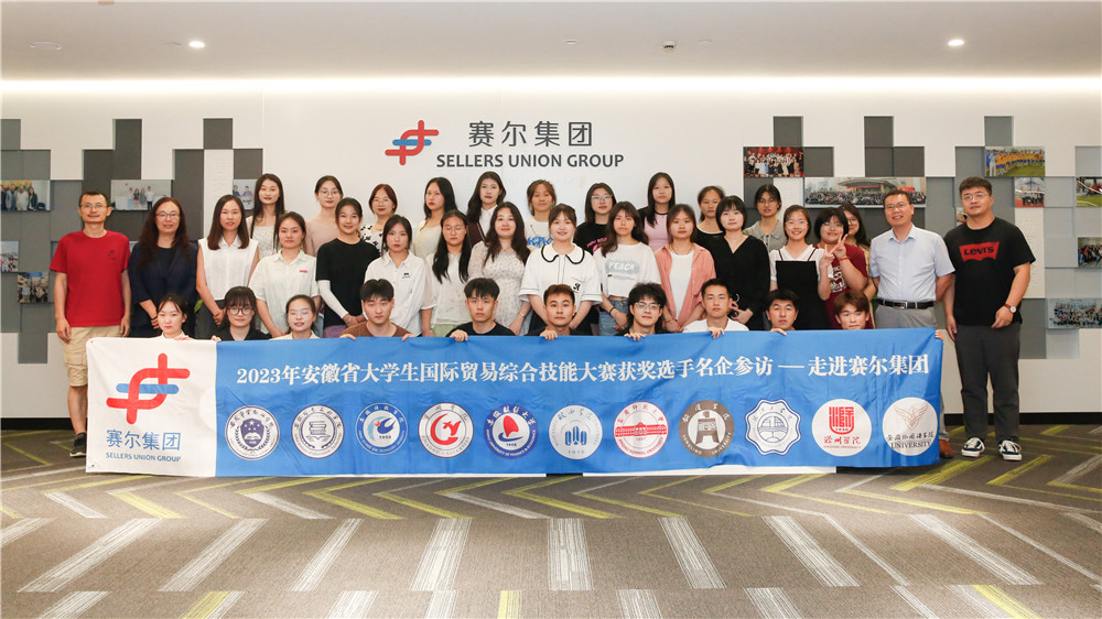 7月17-18日,2023年安徽省大學生國際貿易綜合技能大賽獲獎選手名企參訪——走進賽爾集團活動順利舉行。該活動由安徽財經大學、安徽省大學生國際貿易綜合技能大賽秘書處牽頭,集團承辦。安財國貿學院教授,安徽省大學生國際貿易綜合技能大賽秘書長董桂才、系主任楊志遠、副教授徐磊蒞臨現場指導,集團副總裁方永強,人資部蔣麗妮、陳天楊等熱情接待,來自安徽省11所高校的33位同學參加了本次活動。