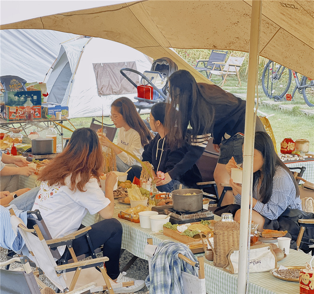 寧波棲野向陽帳篷燒烤位于風景秀麗的海曙郊區,周邊布滿了一片片金黃的剛結穗的稻田,空氣清新宜人。優美的環境,為此次團建增添了一份獨特的韻味。團建活動在中午正式開始,大家早早地到達營地。整個場地被劃分為燒烤區、火鍋區和活動區,各自充滿了歡聲笑語。伴隨著笑聲和烤肉的香氣,大家快速進入狀態,展開了一系列精彩紛呈的活動。燒烤區炭火旺盛,各式各樣的食材在鐵烤架上翻烤著,釋放出誘人的香氣。火鍋區熱鬧非凡,豐富的鍋底和新鮮的食材,讓火鍋成為了大家交流與共享的最佳選擇。大家圍坐在一起,悠閑地品味著美味的火鍋,邊吃邊聊,無論是工作上的問題還是生活瑣事,都能在這個溫馨的環境中暢所欲言。飯后的集體活動讓所有人都夢回無憂無慮的童年,風箏放得越高,團隊士氣越高漲。大家圍坐在火爐邊一起烤地瓜,品味紅薯的香甜,分享各自生活中的趣事,盡情感受此刻的歡愉。