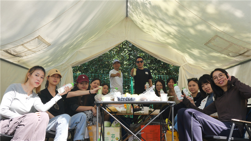 天氣給力,設備齊全,生態園內的宜人環境和歡快音樂也讓人無比放松。露營區域被劃分為主食管飽區和游戲休閑區,人事組兩位大廚端上第一道涼拌三文魚,完美激發了食材的新鮮口感;主食區豐盛的各類美食讓平日里健身減肥的各位都打開胃口,給自己一個完美的cheat day,小小碳水不足為懼啦。一波美食鑒賞之后,大家前往游戲休閑區找尋自己喜愛的小游戲,三五成群開始了智力和默契的比拼。桌游裝備輪番上場,伙伴們開懷大笑,展示了與工作時完全不同的另一面。