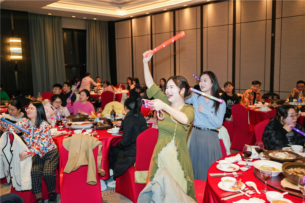 一入會(huì)場,映入眼簾的就是精致的舞臺(tái)和提前準(zhǔn)備好的點(diǎn)心與飲品。在大家沉浸在美食的時(shí)候,第一個(gè)任務(wù)來了——臨時(shí)組隊(duì)準(zhǔn)備周年慶表演節(jié)目,短短三個(gè)小時(shí)的彩排時(shí)間,不僅增加了同事們之前的默契,更拉近了心與心之間的距離。讓大家忍俊不禁的舞蹈、幽默卻又飽含意義的小品、激情澎湃的唱跳、讓人眼前一亮的走秀、惟妙惟肖的配音……一個(gè)個(gè)節(jié)目承載著大家背后的努力,也記錄著每個(gè)人臉上的笑容。既然是周年慶,自然少不了搶紅包環(huán)節(jié),有人喜笑顏開,有人唉聲嘆氣,苦惱是不是該換個(gè)手機(jī)了或者是運(yùn)氣真差。最后在領(lǐng)導(dǎo)的歌聲中圓滿結(jié)束。