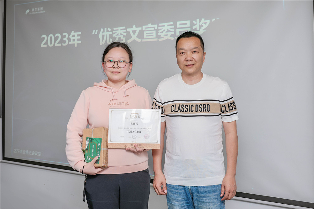 會議首先對2023年全體文宣委員們發放履職紀念品,并表彰5位優秀文宣委員,為他們頒發榮譽獎牌和禮品,感謝他們過去一年在公司和職能部門內部持續進行企業文化的宣傳發動和組織引導,為集團企業文化發展和建設工作中做出了卓有成效的貢獻。