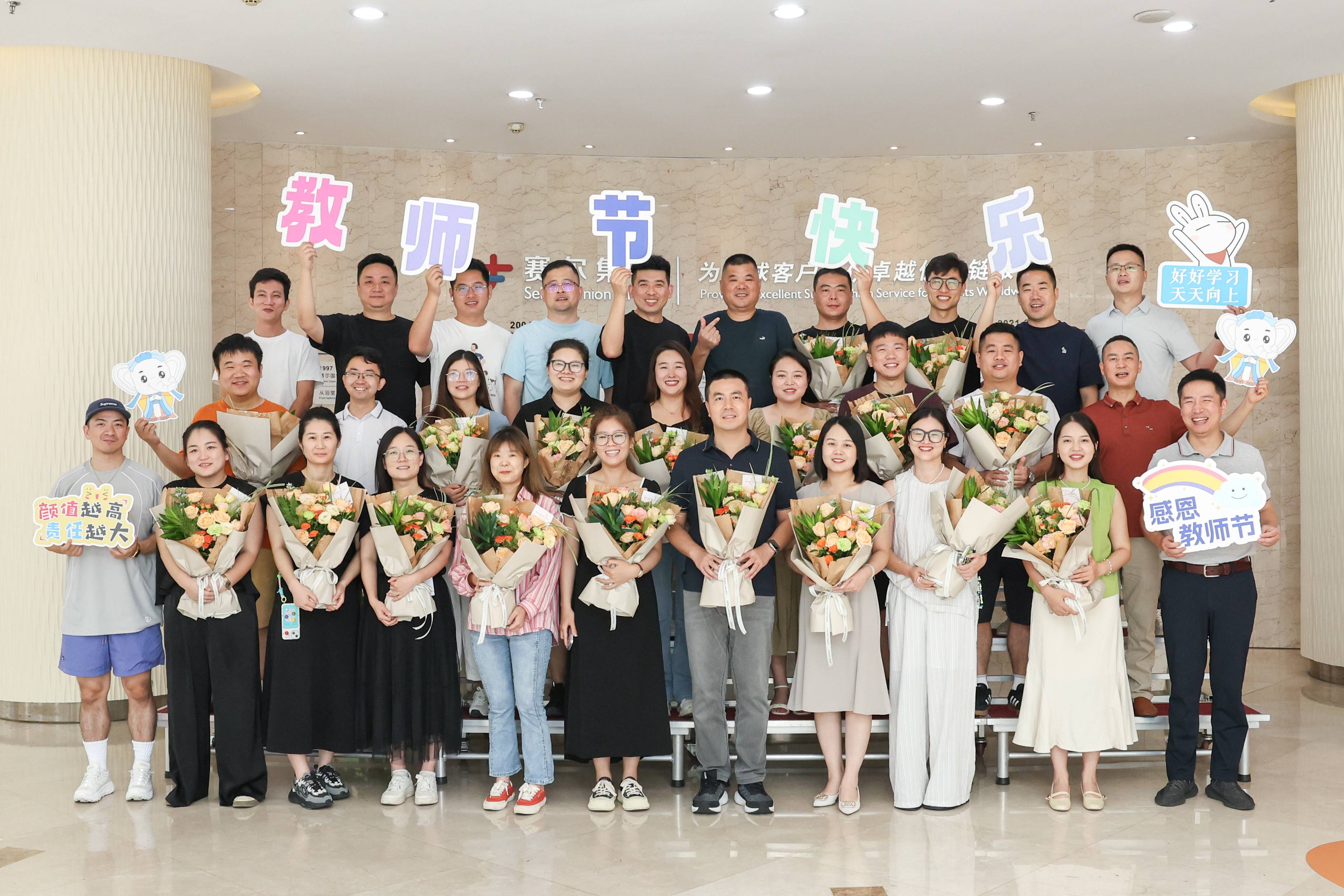 在全國第40個教師節來臨之際,賽爾學院為集團191名內部講師精心準備了節日禮物,同時精心挑選中式款花束贈予講師,向講師們致以最崇高的敬意?;顒蝇F場,特別設計的孔子形象的IP小象,生動活潑地展現了講師們在賽爾課堂中盡己所能、傾囊相授的高尚風范。此次活動將傳統元素與現代創意巧妙融合,不僅是對講師們卓越貢獻的認可和感激,更是對千年師道精神的傳承與弘揚。活動尾聲,講師們歡聚一堂,合影留念,定格下了2024年教師節的喜悅與溫馨。