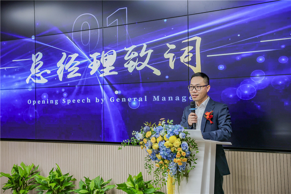 優遠公司總經理卲紀銀致辭。他寄語優琥和優貫銳意進取,逐步邁向行業前列,助力集團跨境電商戰略新突破。