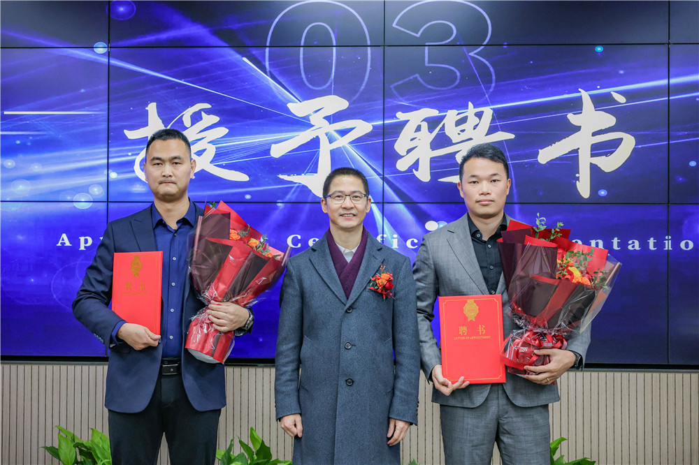 徐平炬董事長為優琥和優貫事業部負責人頒發聘書,責任與期望并肩。