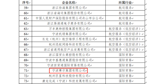 近日,浙江省發改委發布了2024年浙江省服務業領軍企業名單,寧波賽爾集團有限公司榜上有名。