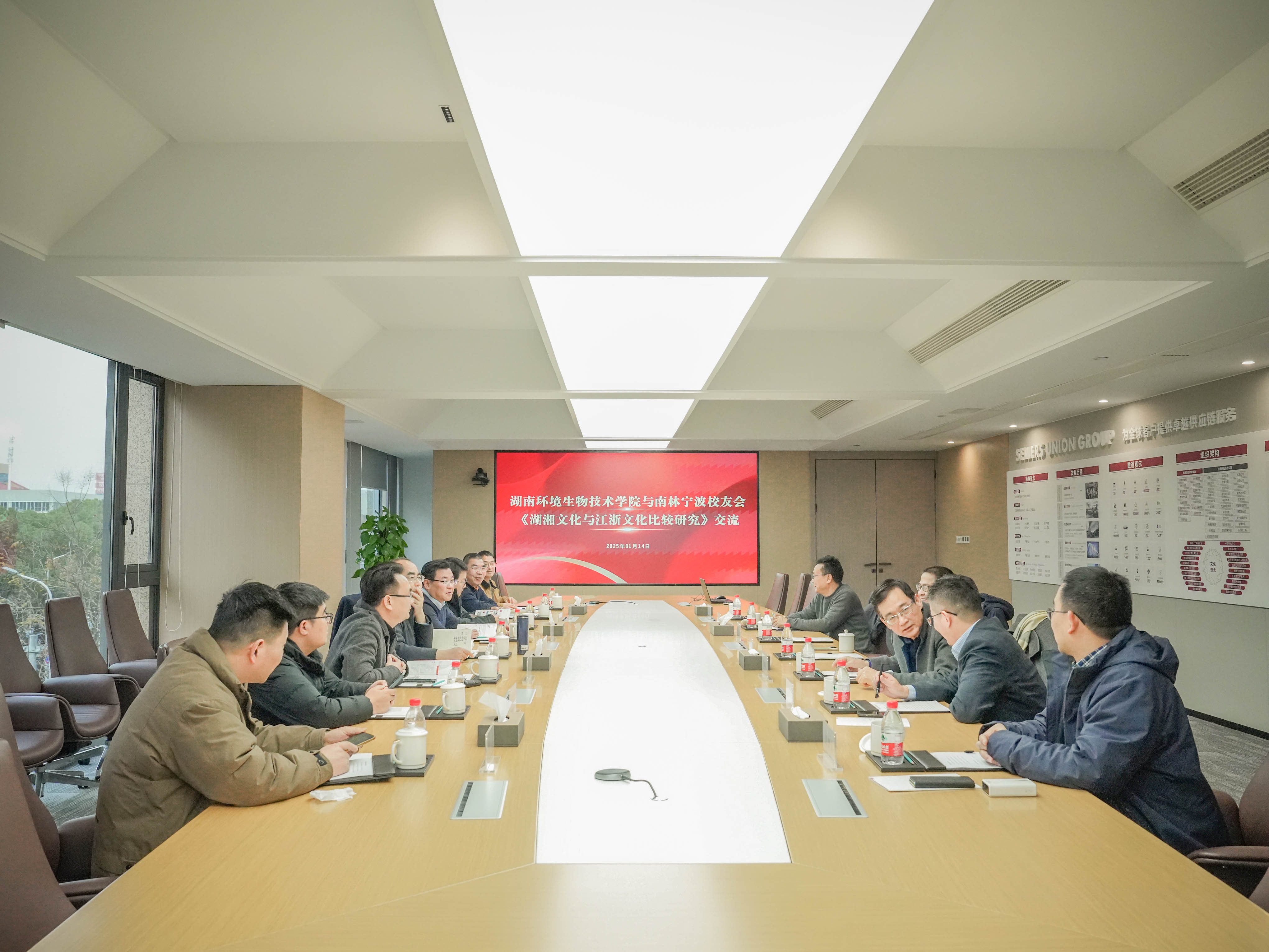 1月14日下午,湖南環境生物技術學院與南京林業大學寧波校友會聯合在賽爾集團創新大廈利他之心會議室舉行《中國地域文化比較研究——湖湘文化&江浙文化》座談會。湖南環境生物職業技術學院黨委副書記、校長庾廬山帶領學院相關部門領導,與賽爾集團董事長徐平炬在內的9位南林寧波校友參與此次活動并開展熱烈交流。