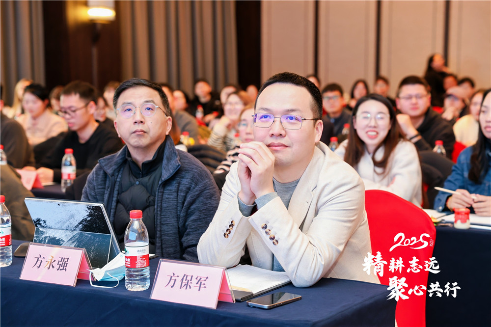 本次會議主題以“精耕志遠,聚心共行”為主題,對過去一年工作進行總結和規劃。會議伊始,保爺匯報2024年年度公司業績,通過一項項數據直觀地向伙伴們展示了24年的成果和不足之處。隨后,各部門領導也對各自工作進行總結并闡述來年工作安排。必不可少的還有頒獎環節,各位獲優各晉升代表分享了他們的奮斗故事。