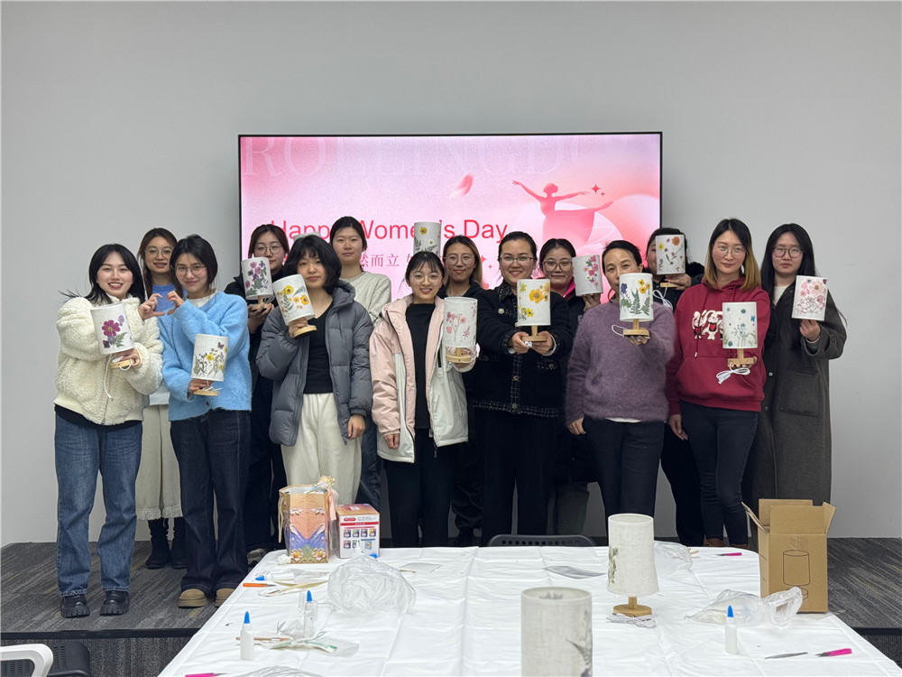 一場(chǎng)治愈系手作盛宴暖心開(kāi)場(chǎng),從挑選干花、構(gòu)思圖案到精準(zhǔn)塑封,姐妹們指尖流轉(zhuǎn)巧思,將山茶、雛菊、櫻花等春日信物融入燈罩。壓花時(shí)的專注、拼貼時(shí)的笑語(yǔ)、點(diǎn)亮臺(tái)燈時(shí)的驚嘆……光影交錯(cuò)間,一件件專屬藝術(shù)臺(tái)燈誕生!每一盞燈都是職場(chǎng)之外的溫柔自白,更是獻(xiàn)給自己的“高光作品”。活動(dòng)尾聲,大家抱著親手制作的壓花臺(tái)燈合影,暖黃燈光映亮笑顏,辦公室瞬間變身“春日藝術(shù)館”!