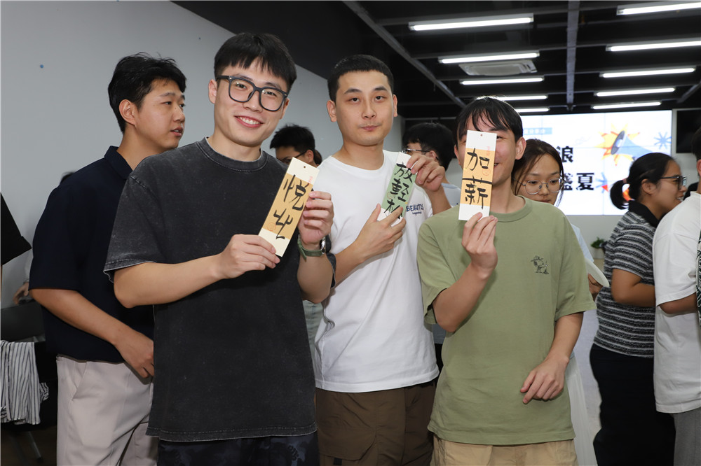 本次季度會特別設(shè)計“市集小賣部”,讓大家感受夏日市集的樂趣,水果、甜品、冰飲、炸雞、披薩應(yīng)有盡有。同時還為小伙伴們準(zhǔn)備了“幸運手寫簽”的抽取活動,大家共同參與抽簽、分享簽文,創(chuàng)造了一個輕松有趣的互動機會,拉進彼此的距離;每份手寫簽都成為各自專屬的祝福,給予大家一種簡單而美好的儀式感與獨特的紀(jì)念意義。